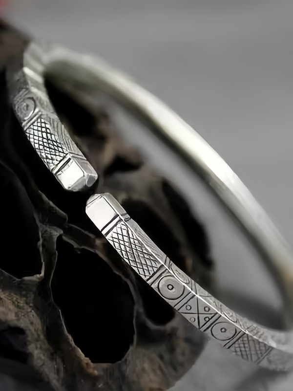 Cylindrical Square Bar Pure Silver Bracelet